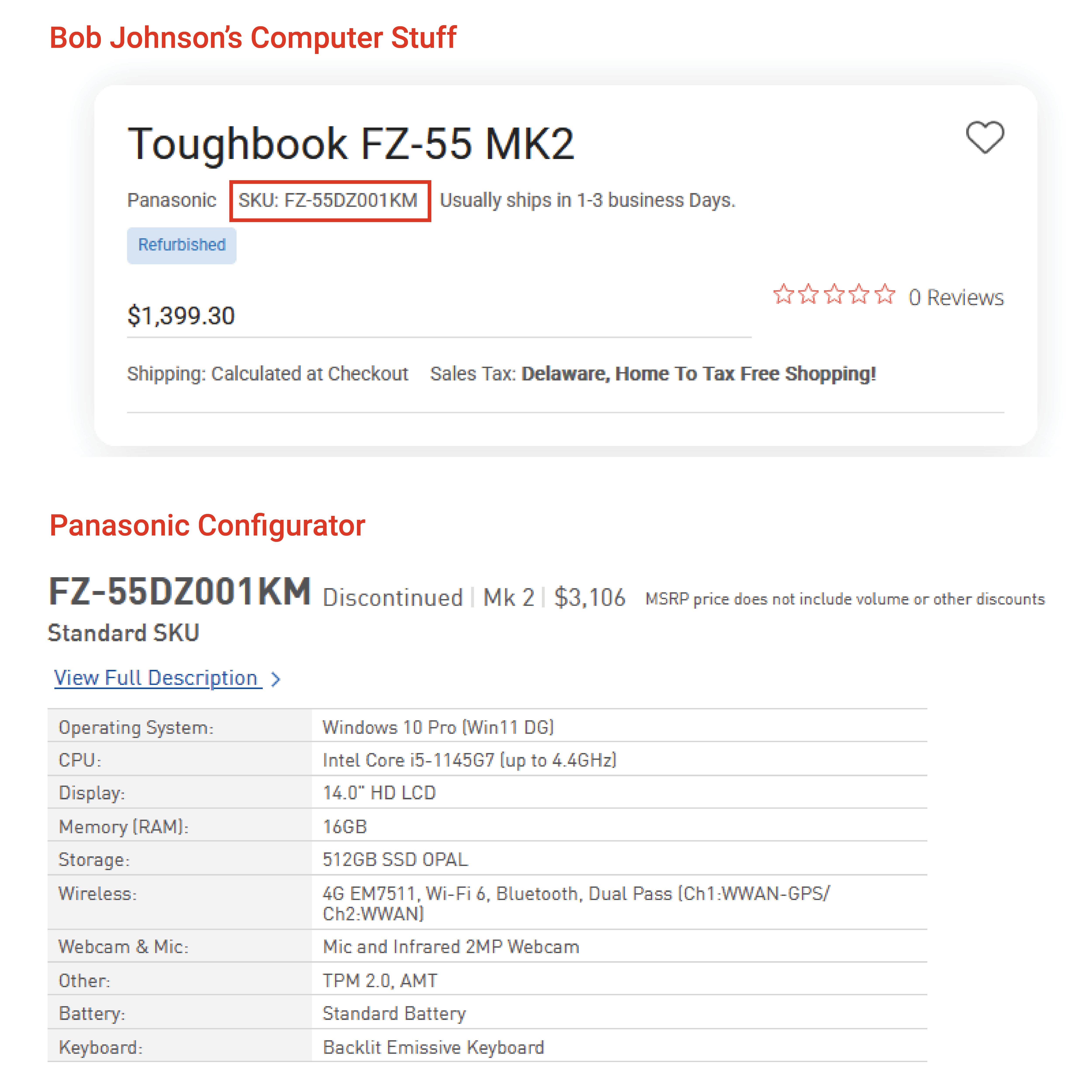 Curious about what a refurbished Bob Johnson’s Toughbook cost when it was new? Use the Panasonic Configurator tool and pull the SKU from one of our product pages.